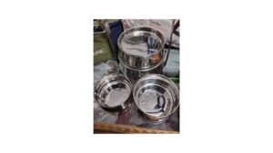 This high-quality, heavy-duty stainless steel tiffin carrier is designed for durability and daily use. Ideal for carrying a complete, multi-course meal to the office, school, or on a picnic, it combines traditional design with modern, premium-grade construction.